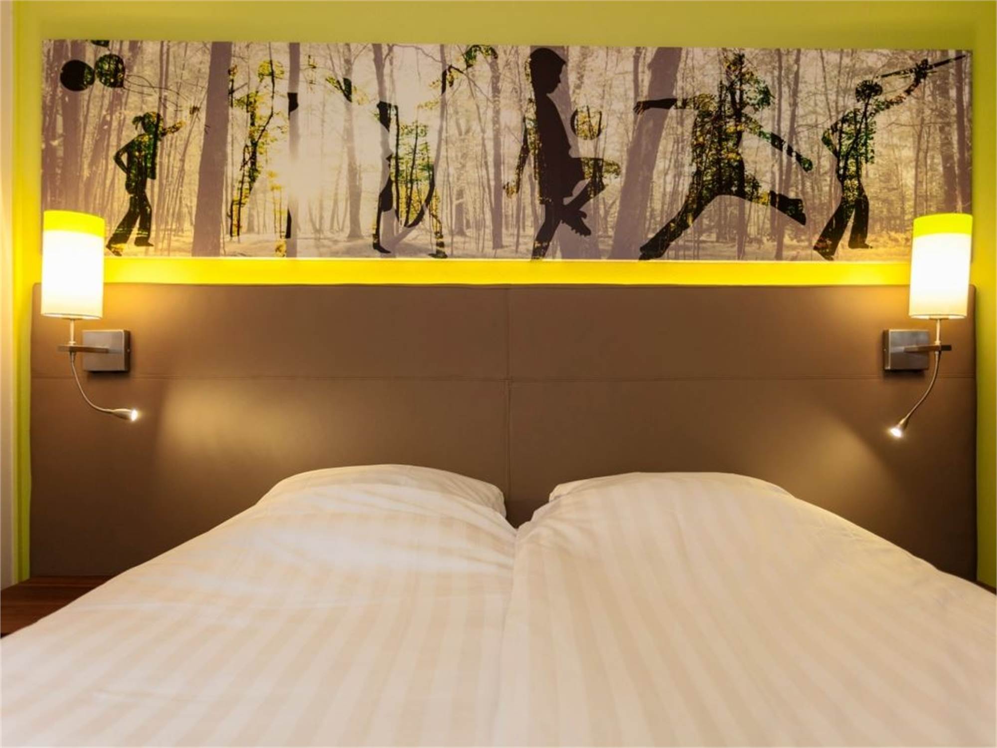 Bedroom with two single Auping box spring beds, 2 person soft mattress topper and flatscreen TV
