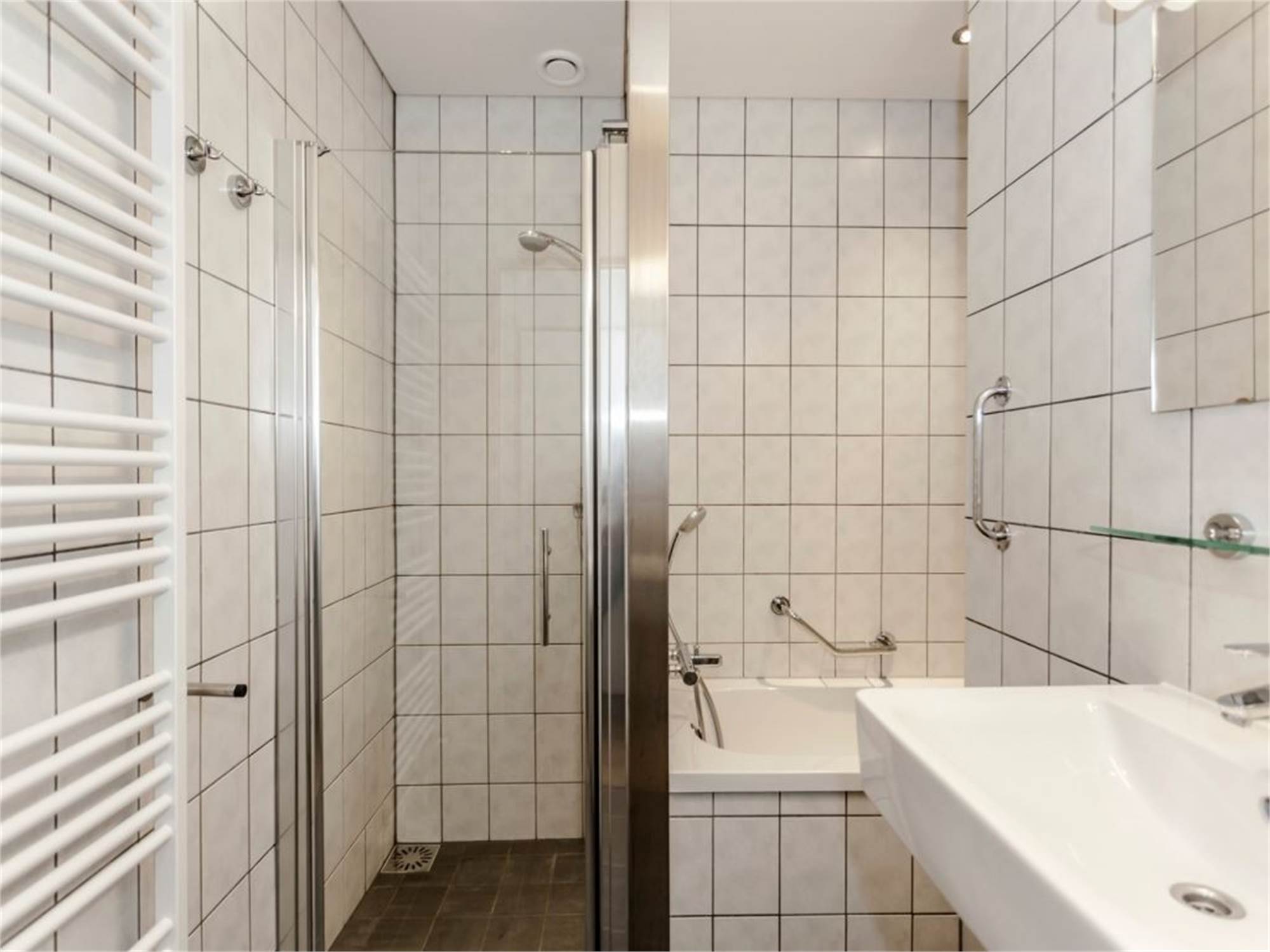 Bathroom with shower cubicle and washbasin