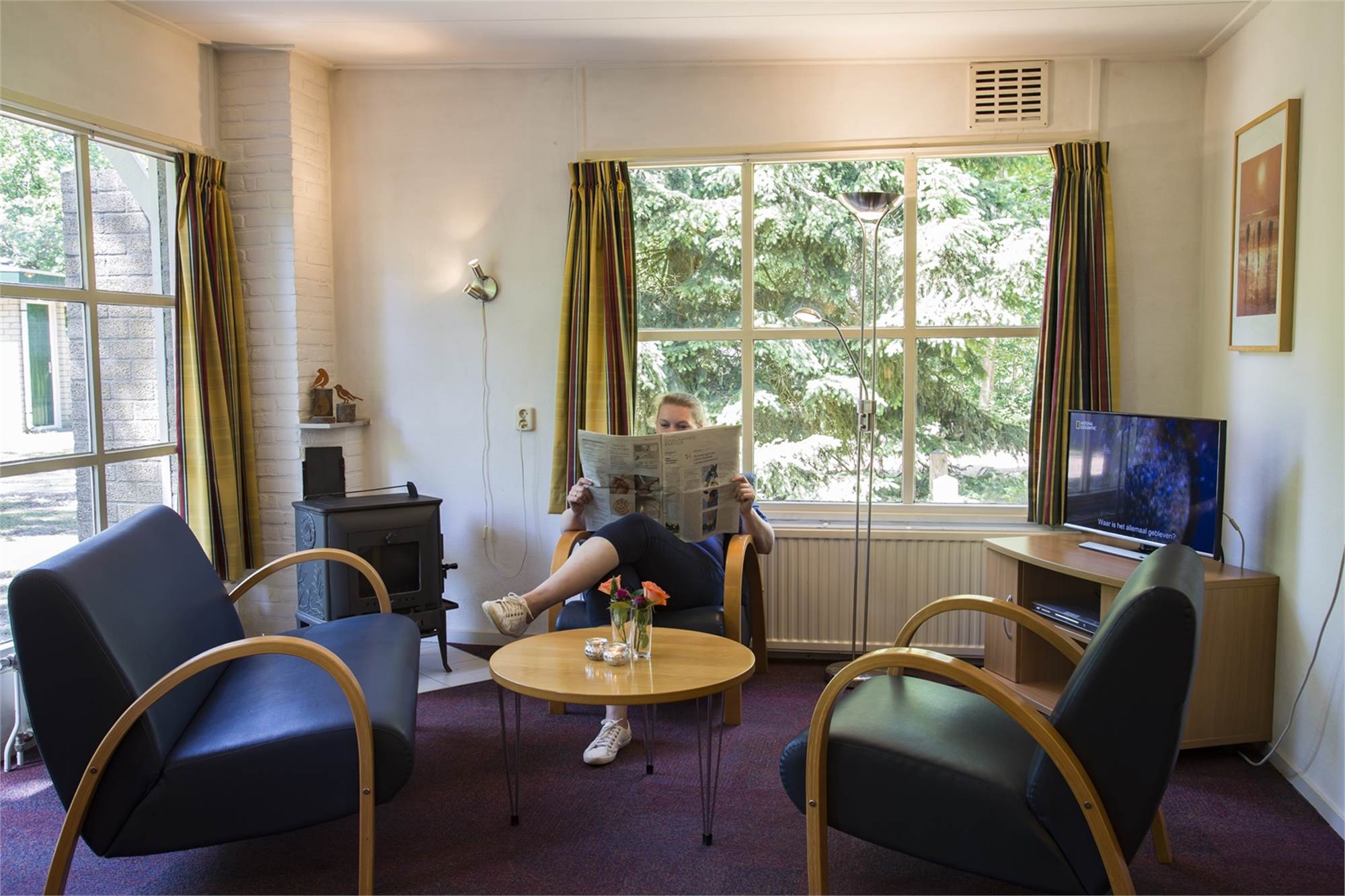General/location Detached Situated in the woods Design Characteristics livingroom with terrace doors 4p. Dining area Vacuum cleaner Central heating Wood-burning stove Outside garden Terrace furniture Parking near the accommodation Audio/Video/Electronics Internet WIFI at the park TV with radio DVD Player CD Player Kitchen Basic open kitchen Coffee maker Electric kettle Cooker hood Fridge + freezing compartment Gas stove with 4 cooking rings Microwave Sleeping Bedroom with 2 boxspring beds Eiderdowns Bedroom with a double bed Number of bedrooms: 2 Sanitary Shower Seperate toilet Washbasin in bedroom