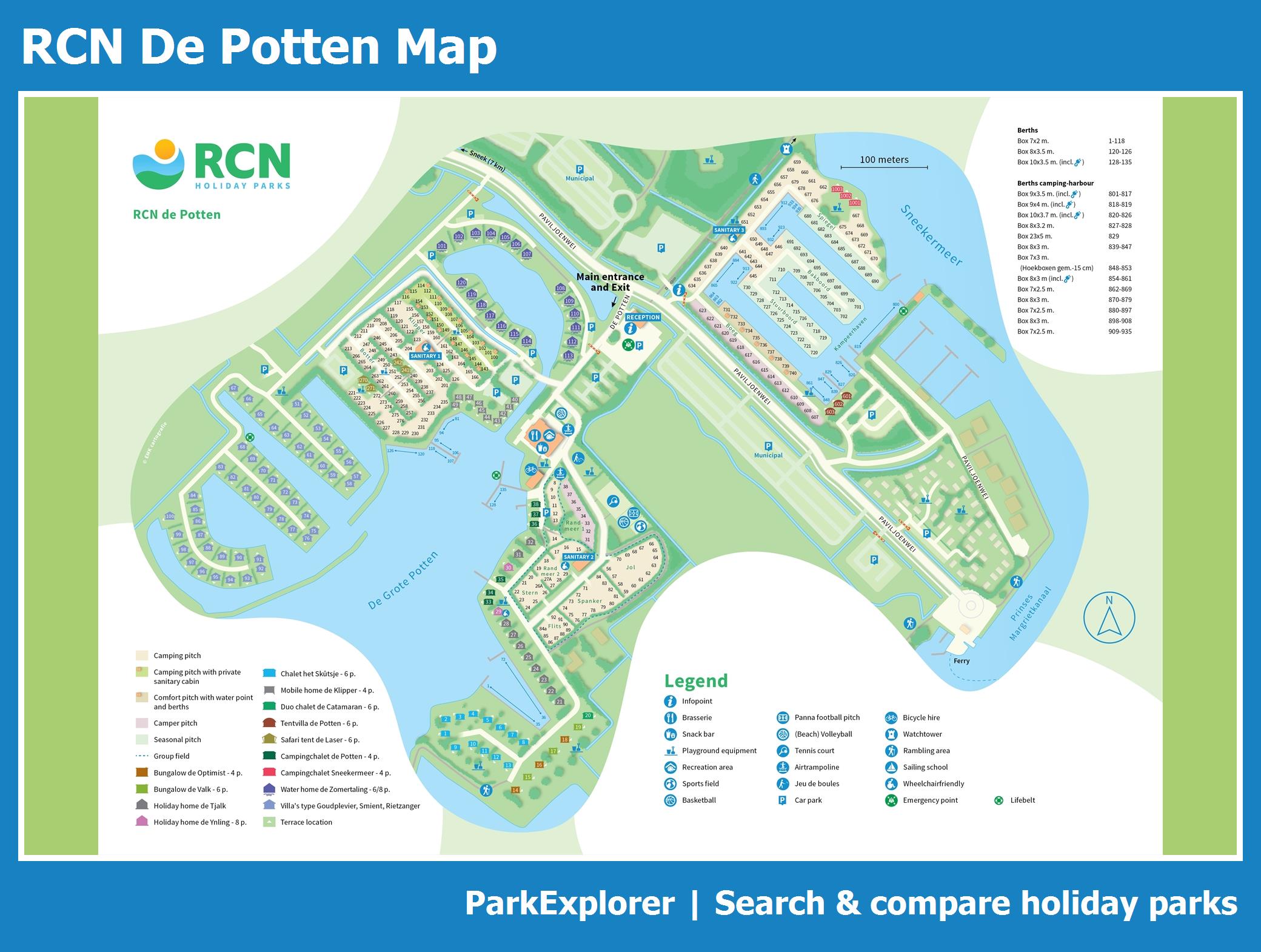 Up-to-date and comprehensive village map of RCN De Potten with all accommodations and facilities, also available as PDF.