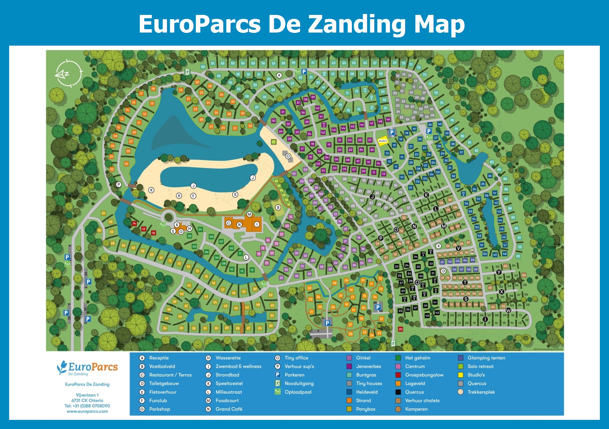 Up-to-date and comprehensive village map of EuroParcs De Zanding with all accommodations and facilities, also available as PDF.