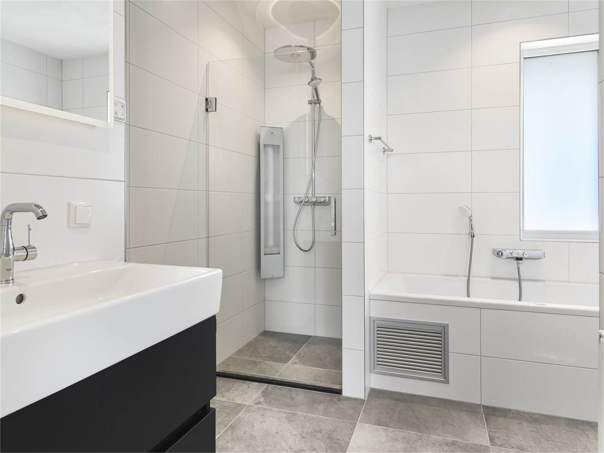 Bathroom with jet stream bath, shower cubicle, toilet and washbasin on the first floor