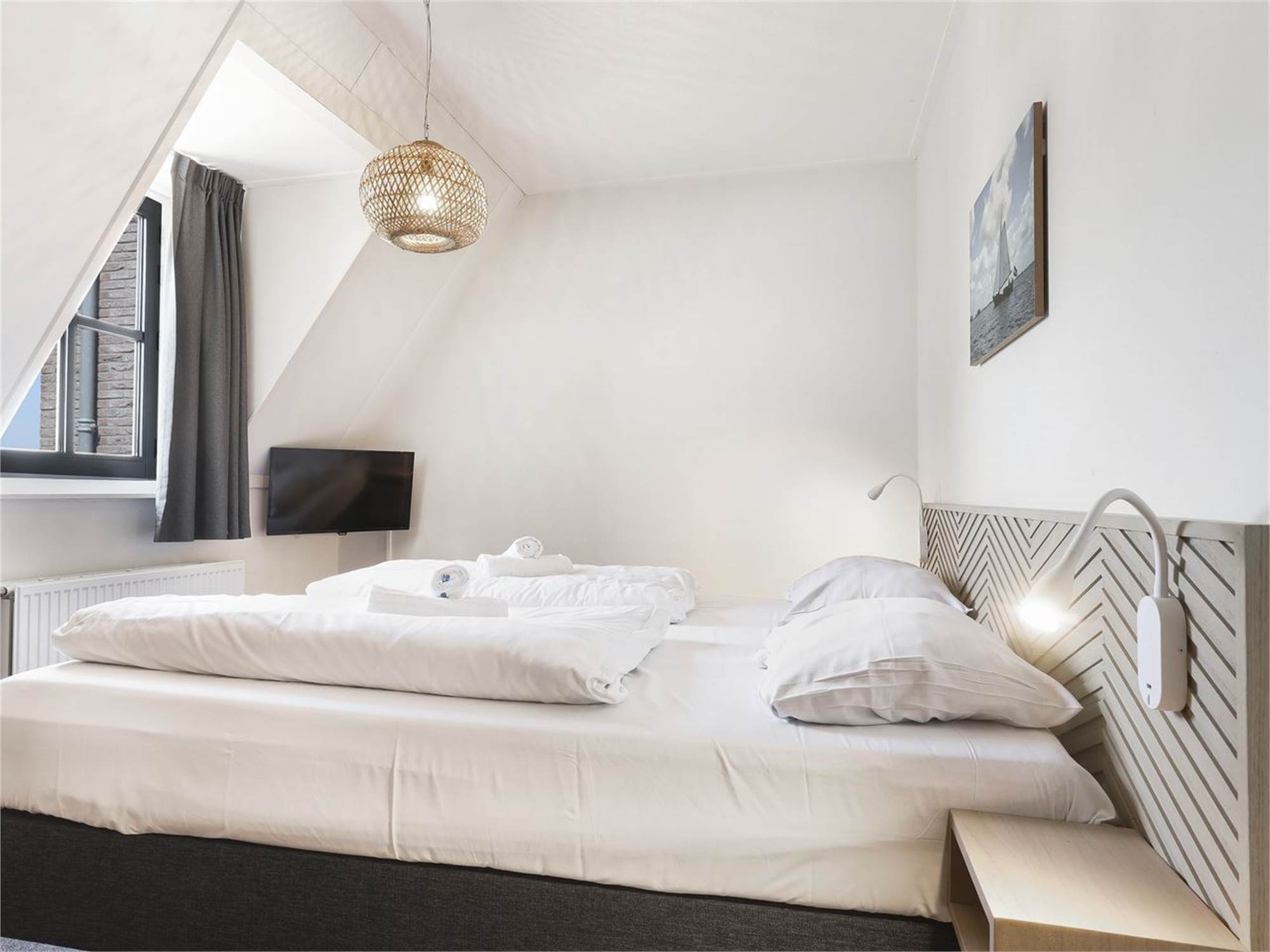• Bedroom with two single box spring beds and flatscreen TV on the first floor