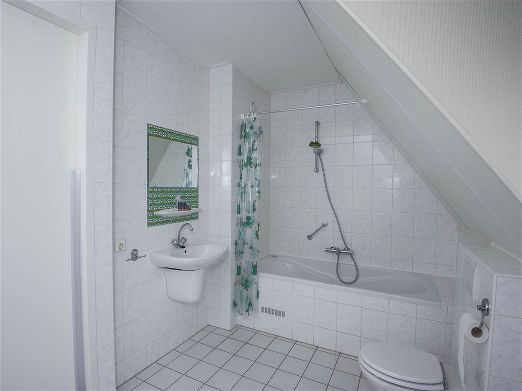 Bathroom with bathtub, washbasin and toilet on the first floor