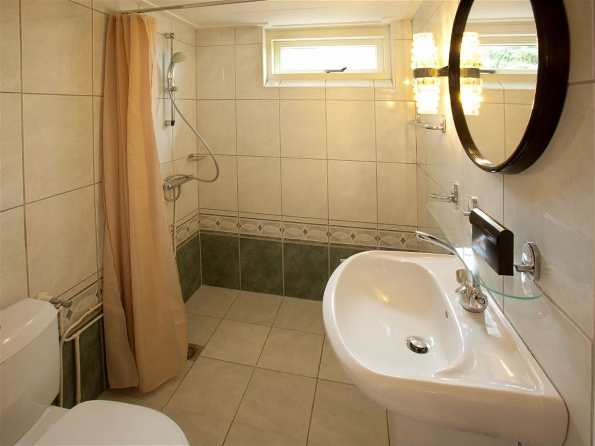 • Bathroom with shower cubicle, washbasin and toilet