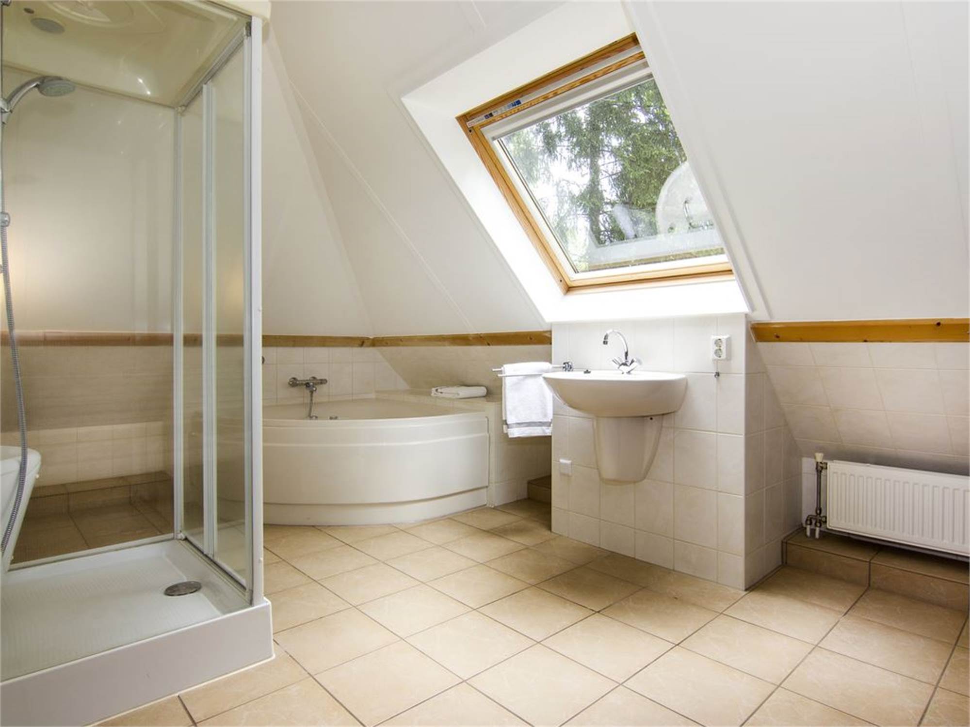 Bathroom with whirlpool, steam shower and washbasin on the first floor