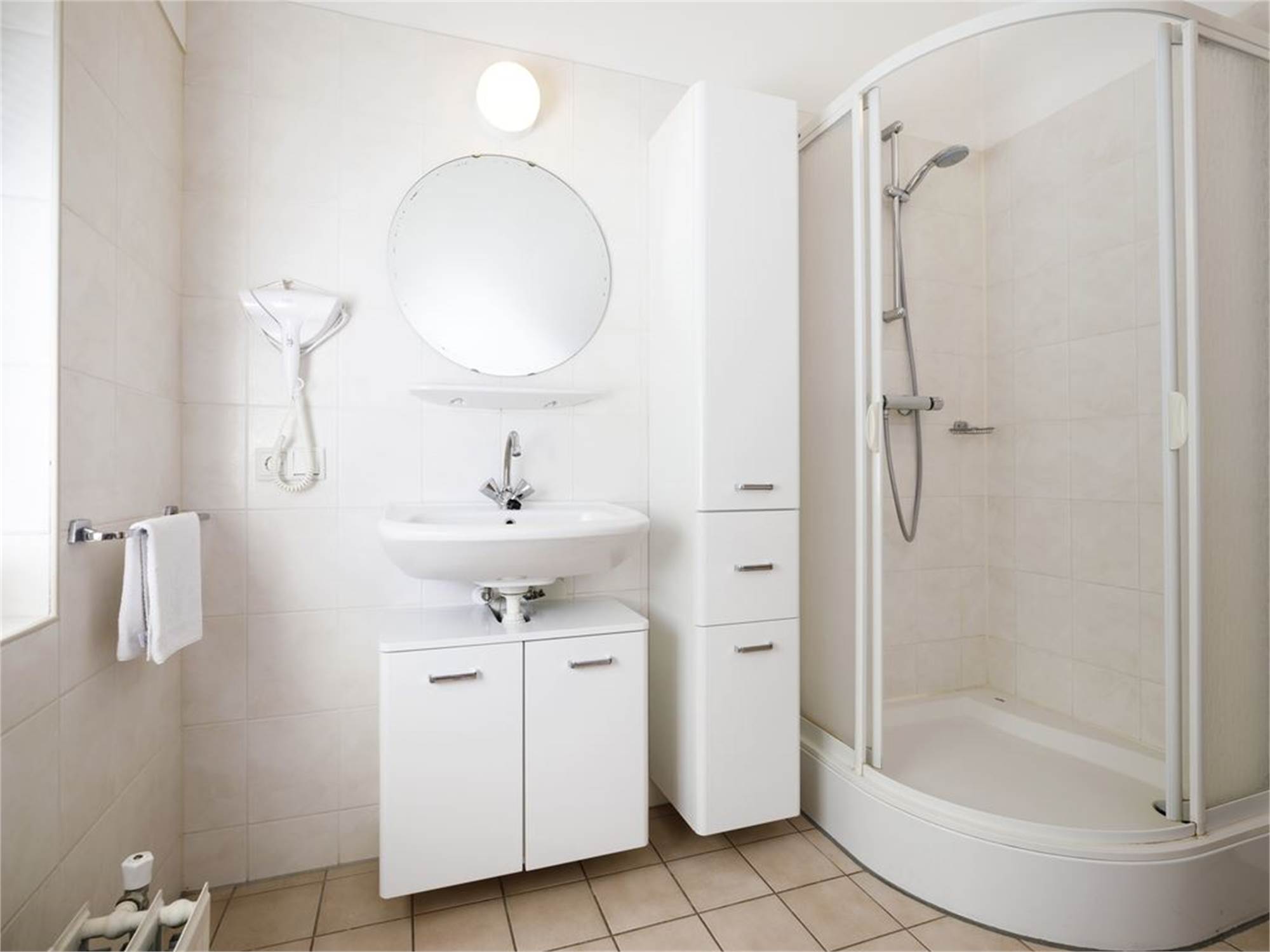 Bathroom with shower cubicle, washbasin and toilet on the first floor
