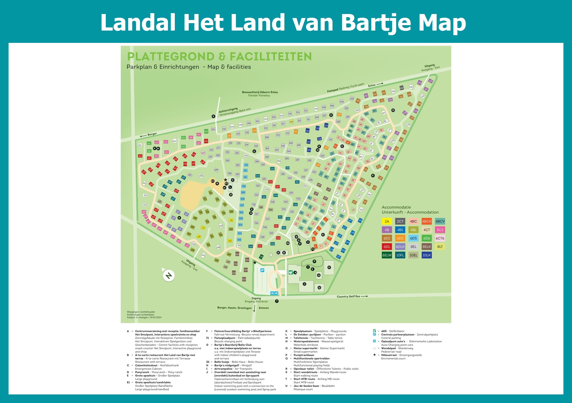 Up-to-date and comprehensive village map of Landal Het Land van Bartje with all accommodations and facilities, also available as PDF.