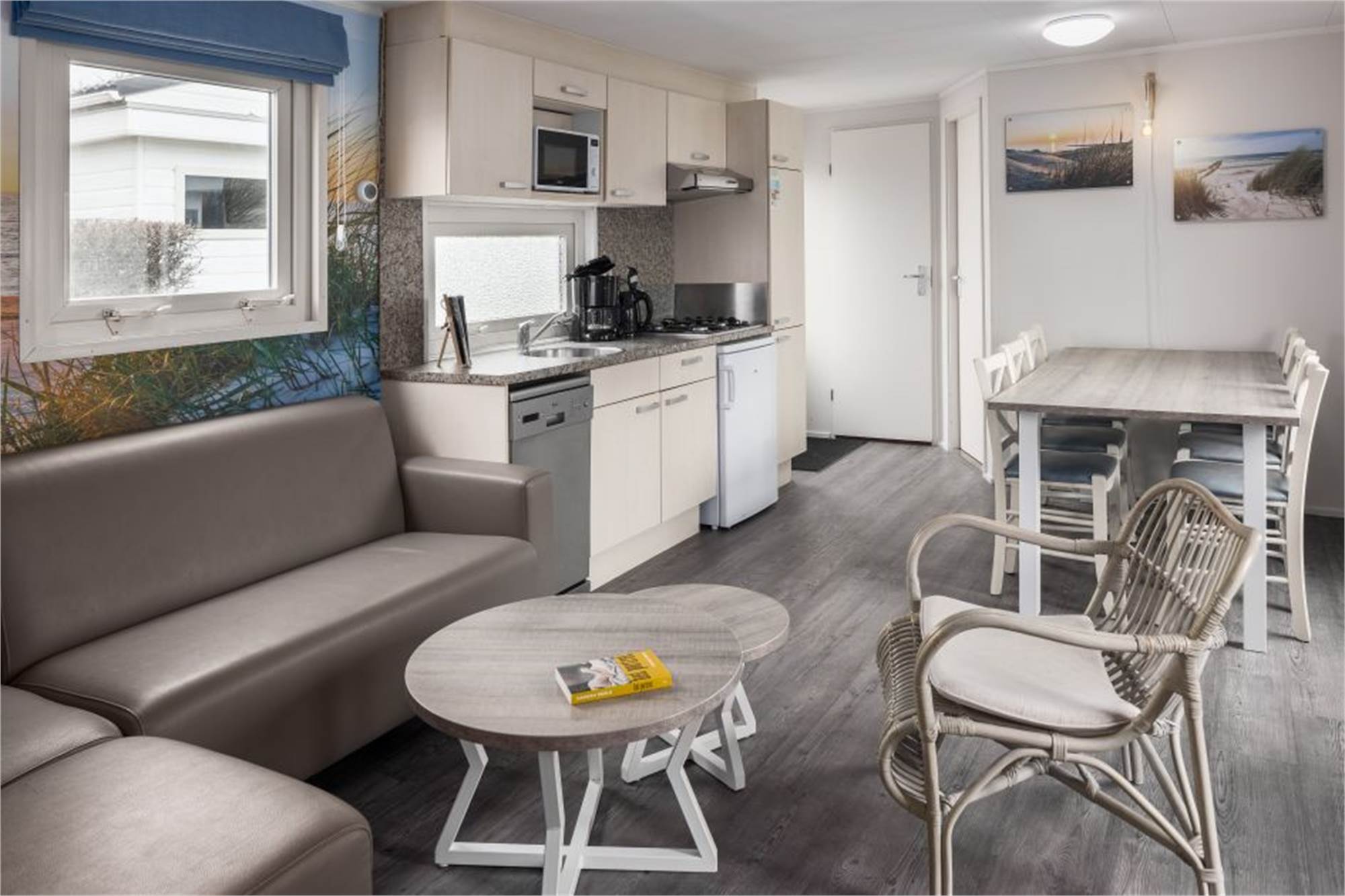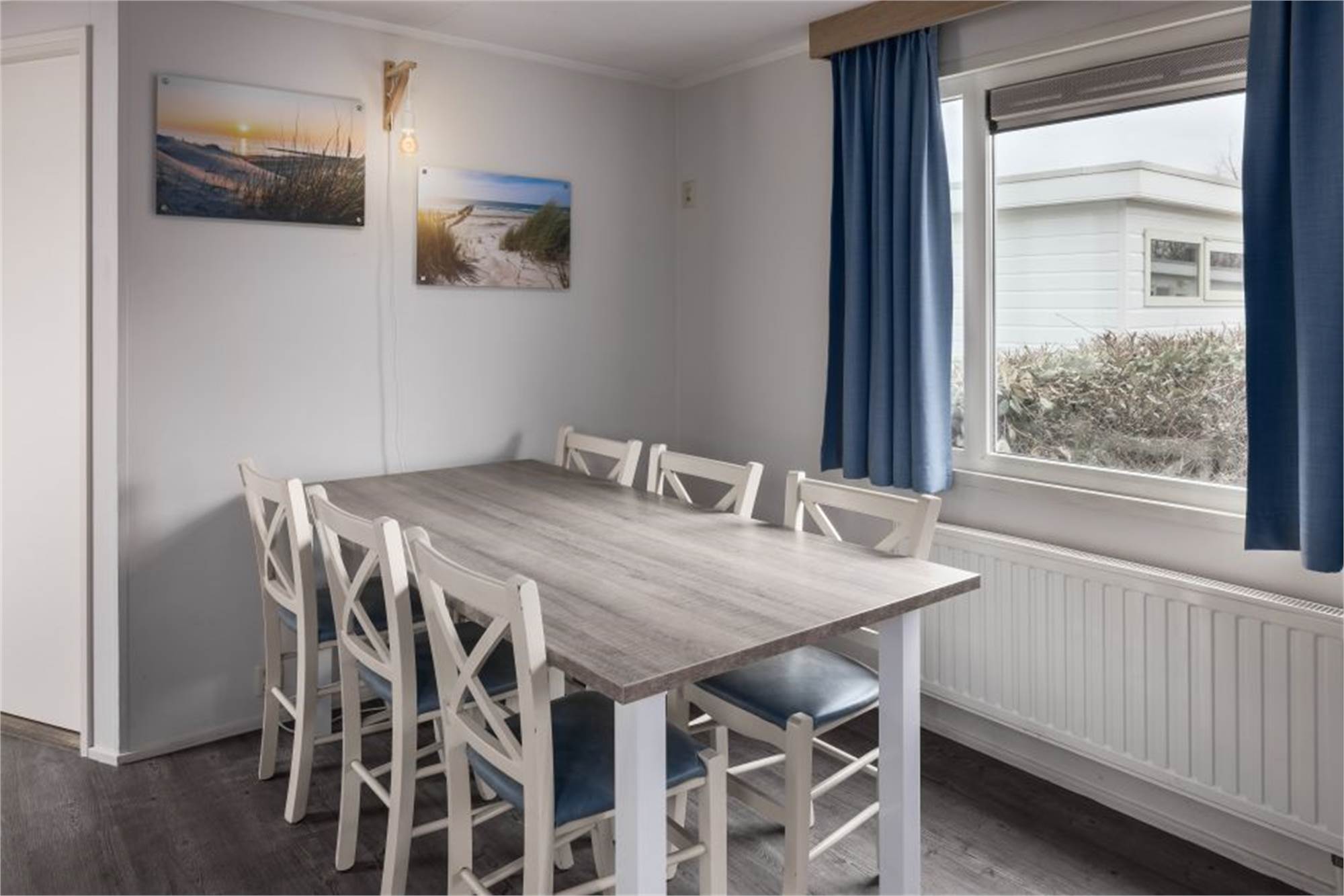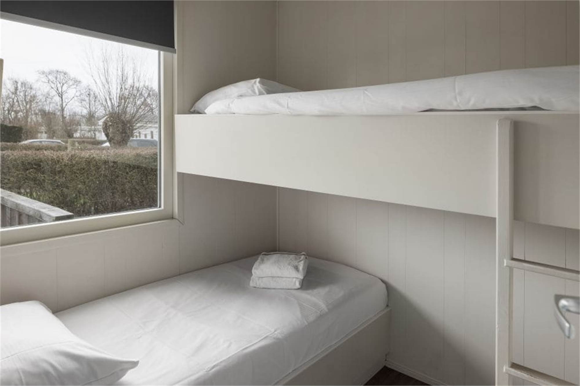 This ground floor chalet is suited for 6 persons. The living room of the house has a fresh design with a cosy seating lounge and a TV. The open kitchen is equipped with a dishwasher, microwave and a filter coffee machine. The chalet also has 3 bedrooms, of which 2 with bunk beds and 1 with 2 single beds. There is also a bathroom with shower and toilet. Outside, you will find a garden with furnished terrace.
