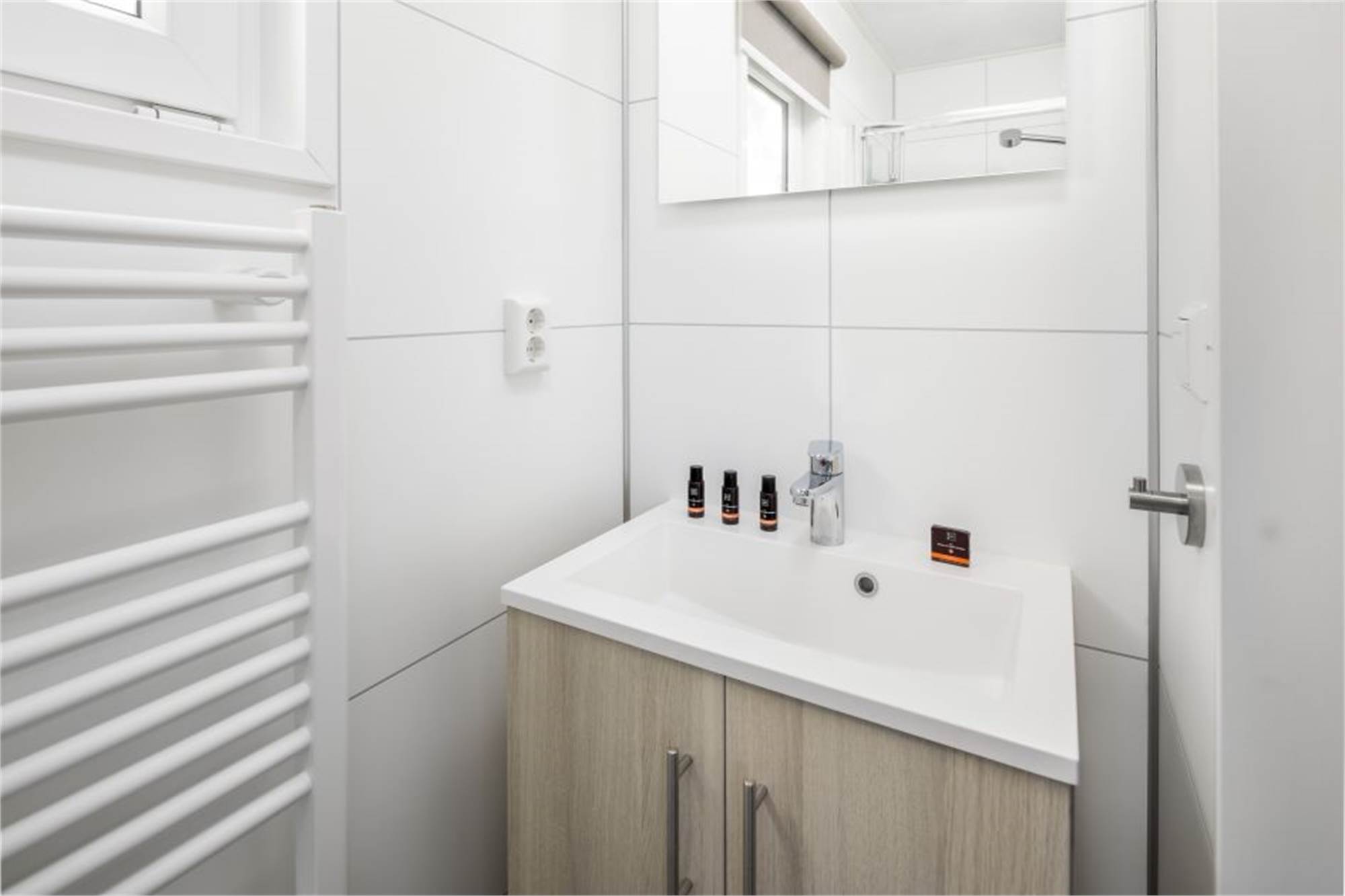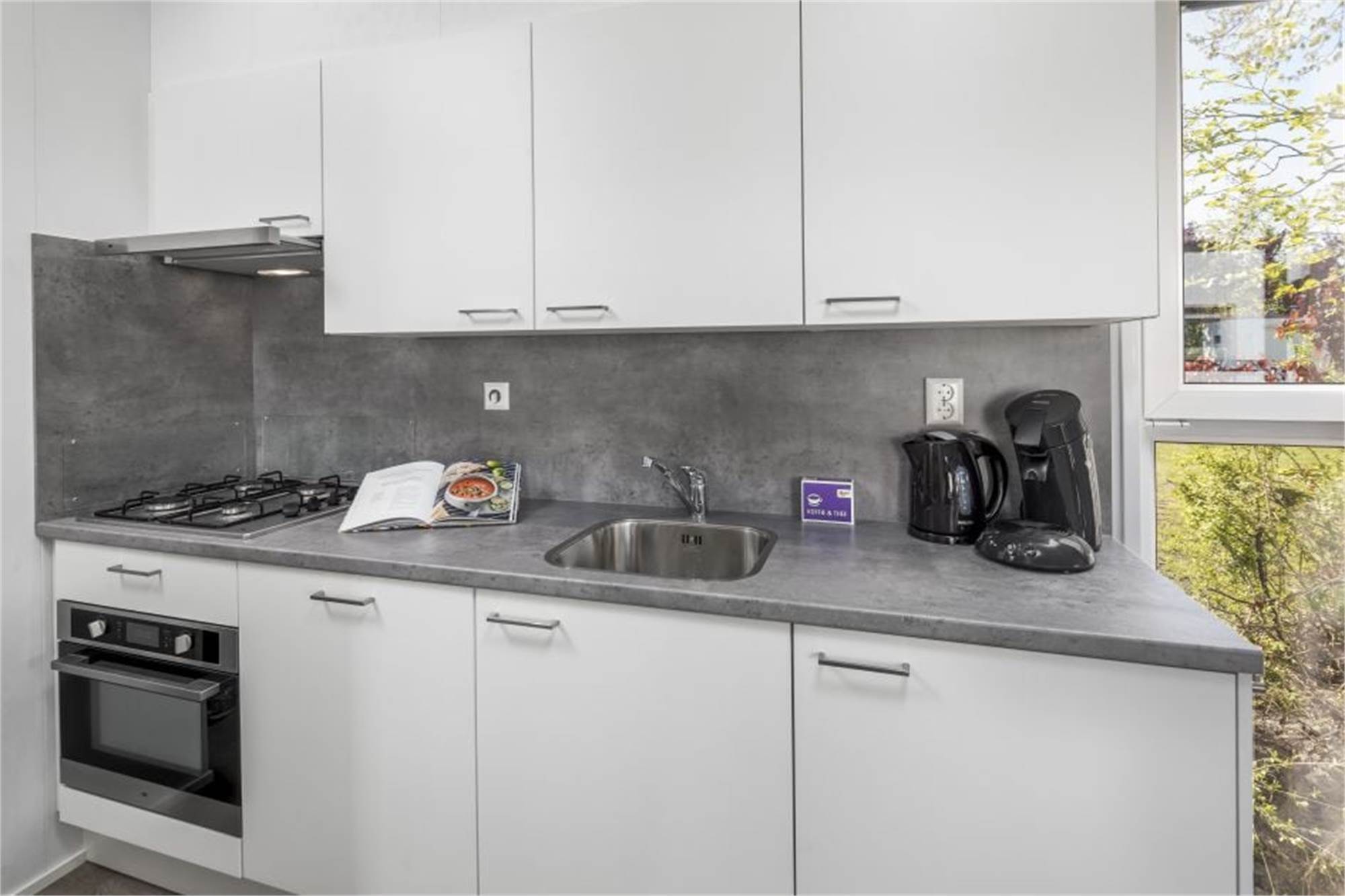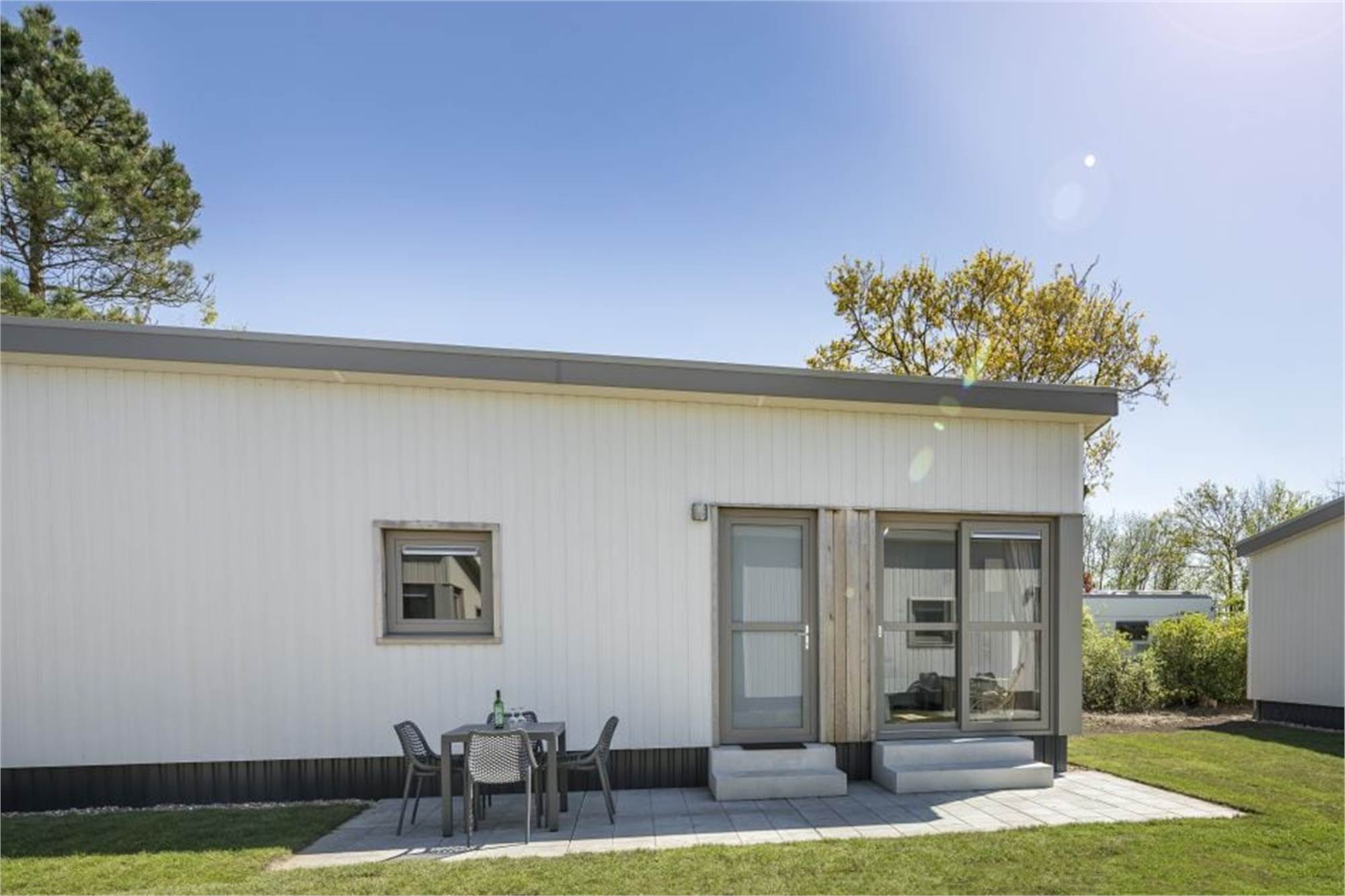 Detached, single-storey lodge for 4 people. The living room is stylishly furnished with modern decor. The kitchen has a dishwasher, microwave, fridge with freezer and coffee pad machine. In addition, the lodge has 2 bedrooms with, 2 bathrooms with shower and 1 seperate toilet. All bedrooms have single box-spring beds. The lodge is also equipped with garden furniture and offers free Wi-Fi.
