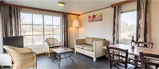 This detached chalet is one-level and suitable for 4 persons. The chalet has a living room and an open kitchen with oven, fridge and coffee machine. There are 2 bedrooms, one of which with 2 single beds and one with 1 double bed. The chalet has a bathroom with shower and a separate toilet, and is in addition provided with a furnished terrace. You can park your car at the central parking lot and use of Wi-Fi is free of charge.