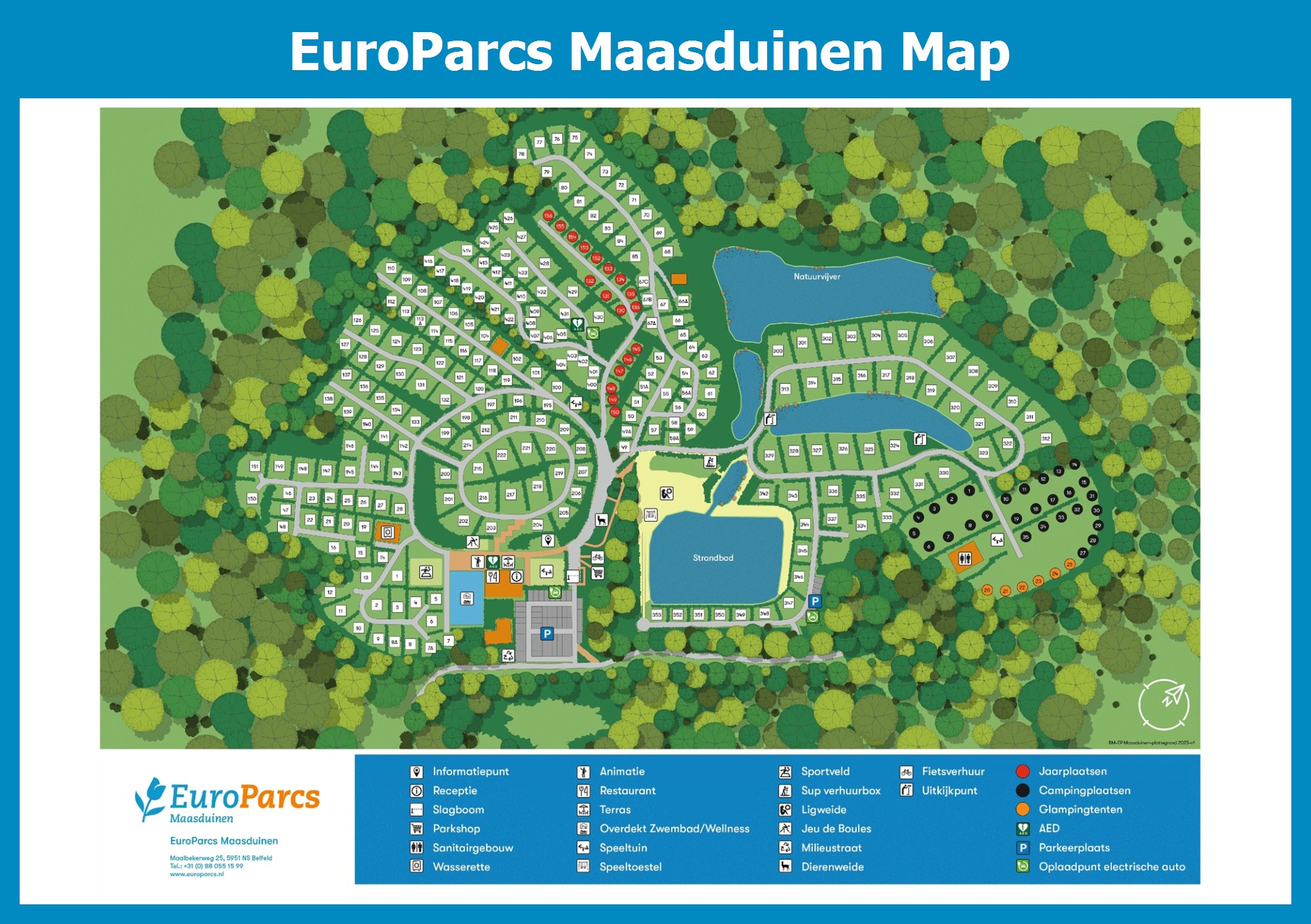 Up-to-date and comprehensive village map of EuroParcs Maasduinen with all accommodations and facilities, also available as PDF.