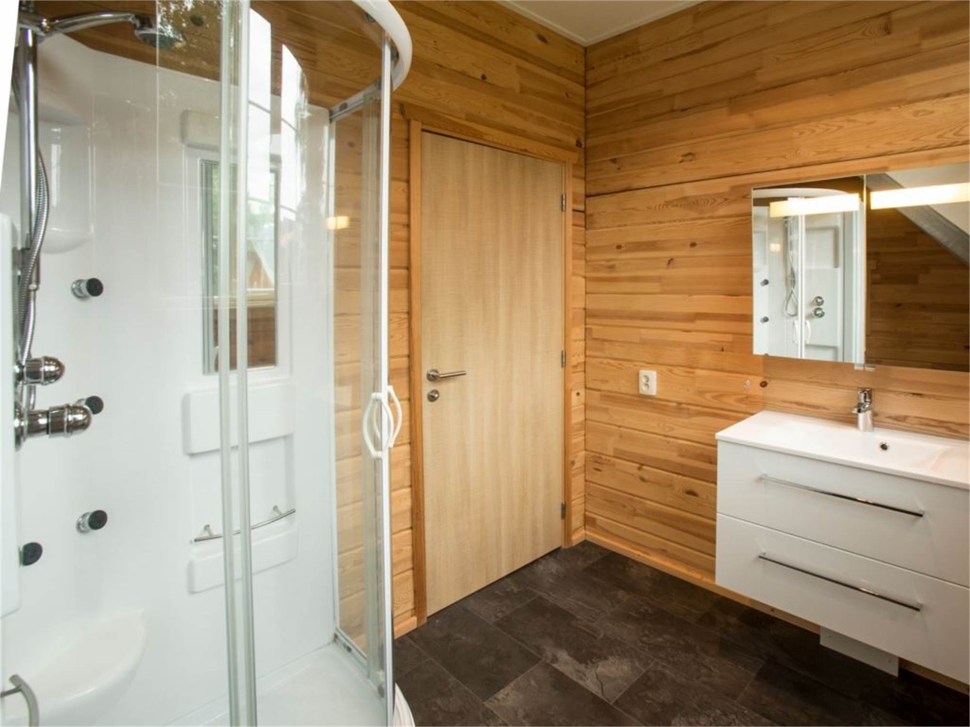 Three or four bathrooms with a shower cubicle or bathtub, washbasin and toilet