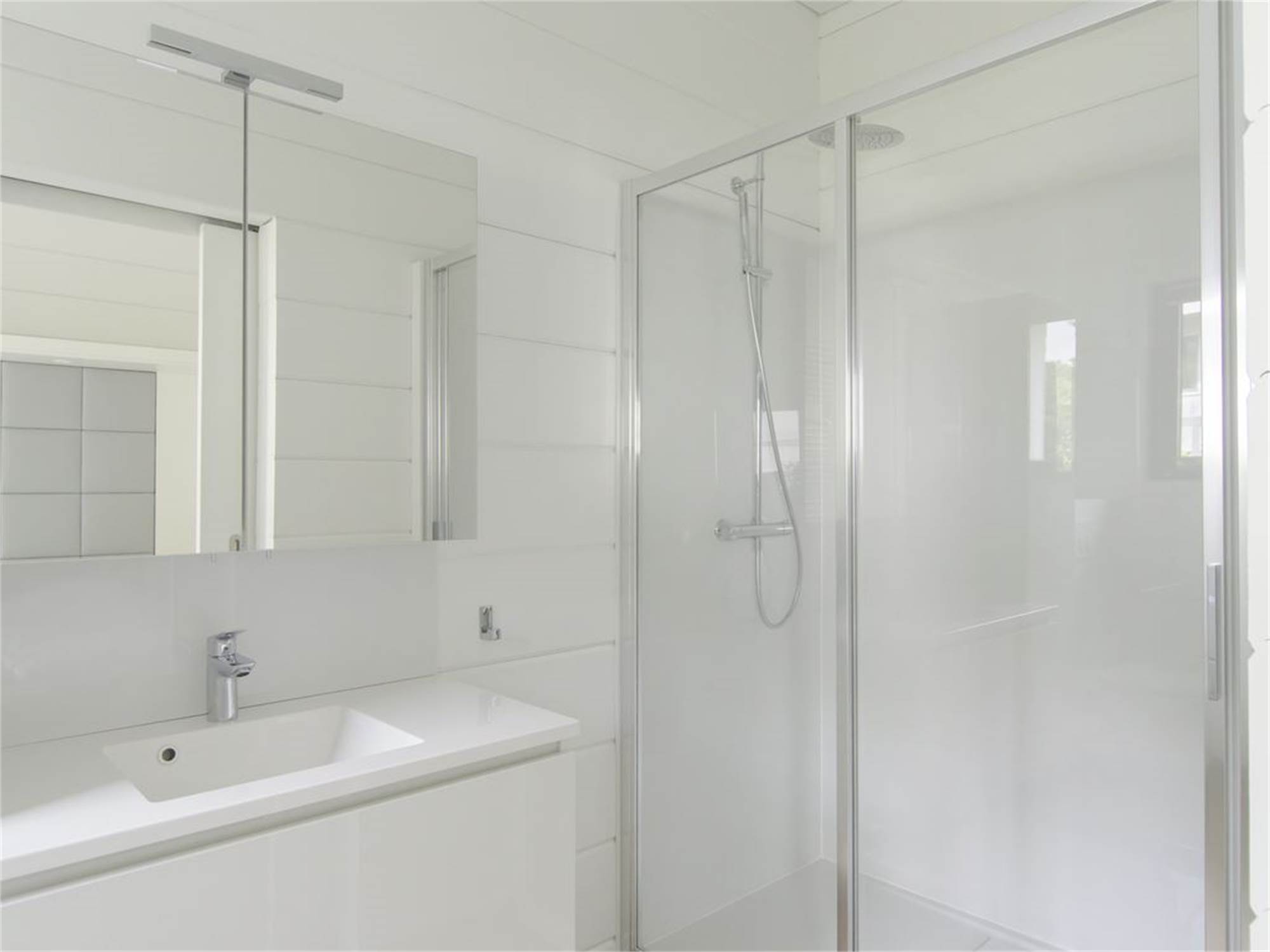 Two bathrooms with rain shower, washbasin and toilet