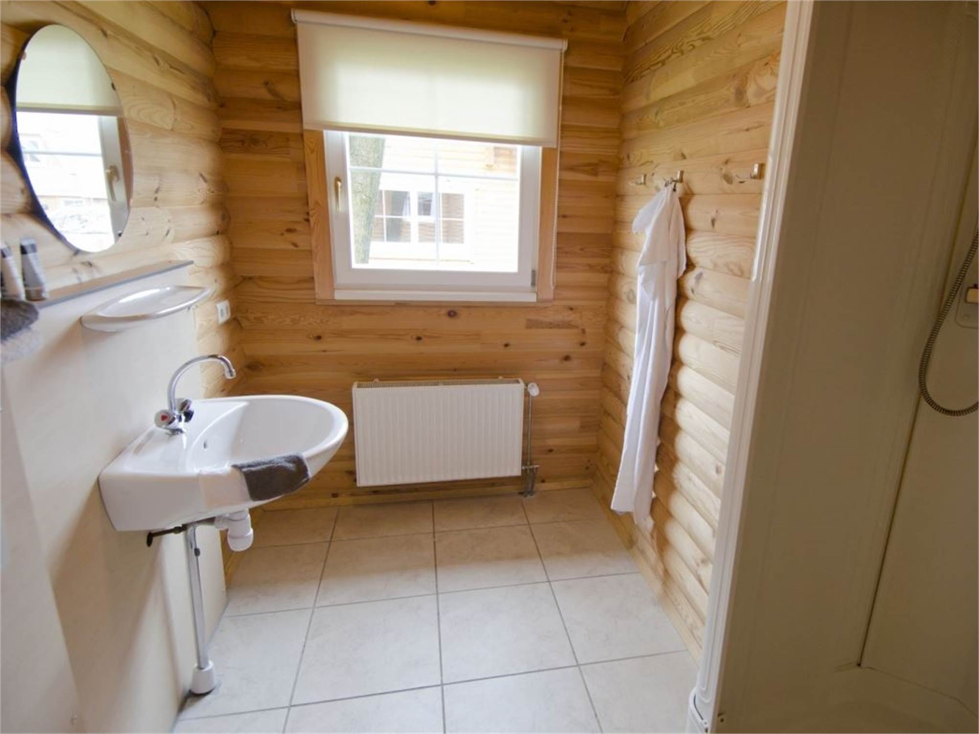Bathroom with shower cubicle, washbasin and toilet
