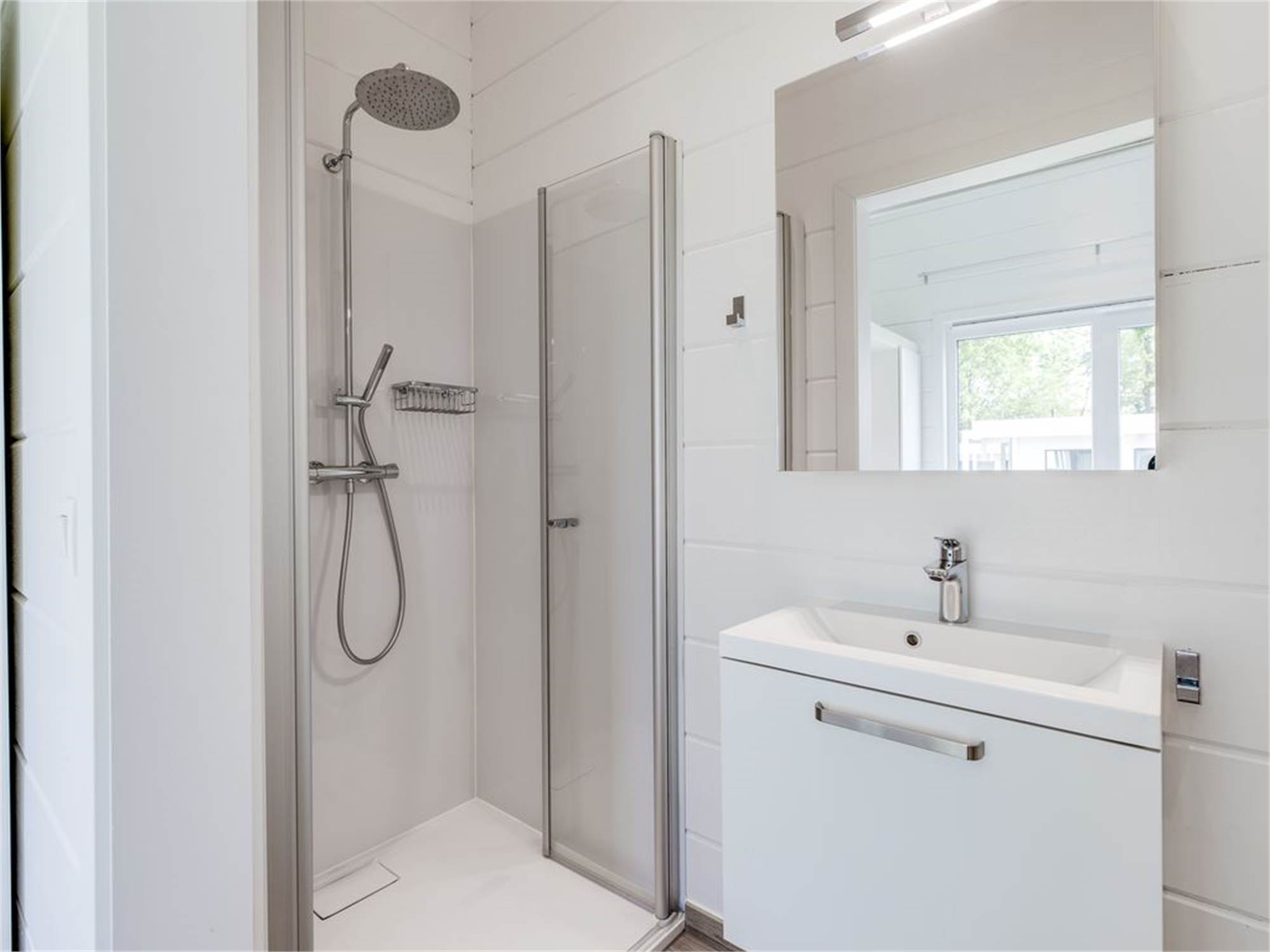 • Bathroom with shower cubicle, washbasin and toilet