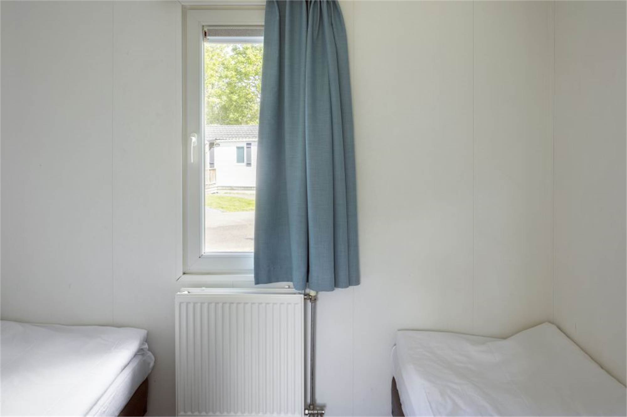 This detached chalet is suitable for 4 people. The chalet has a kitchen with dishwasher, fridge with freezer and microwave, living room, bathroom and 2 bedrooms with 2 single beds each. There is garden furniture on the veranda. Free Wi-Fi is available for you.