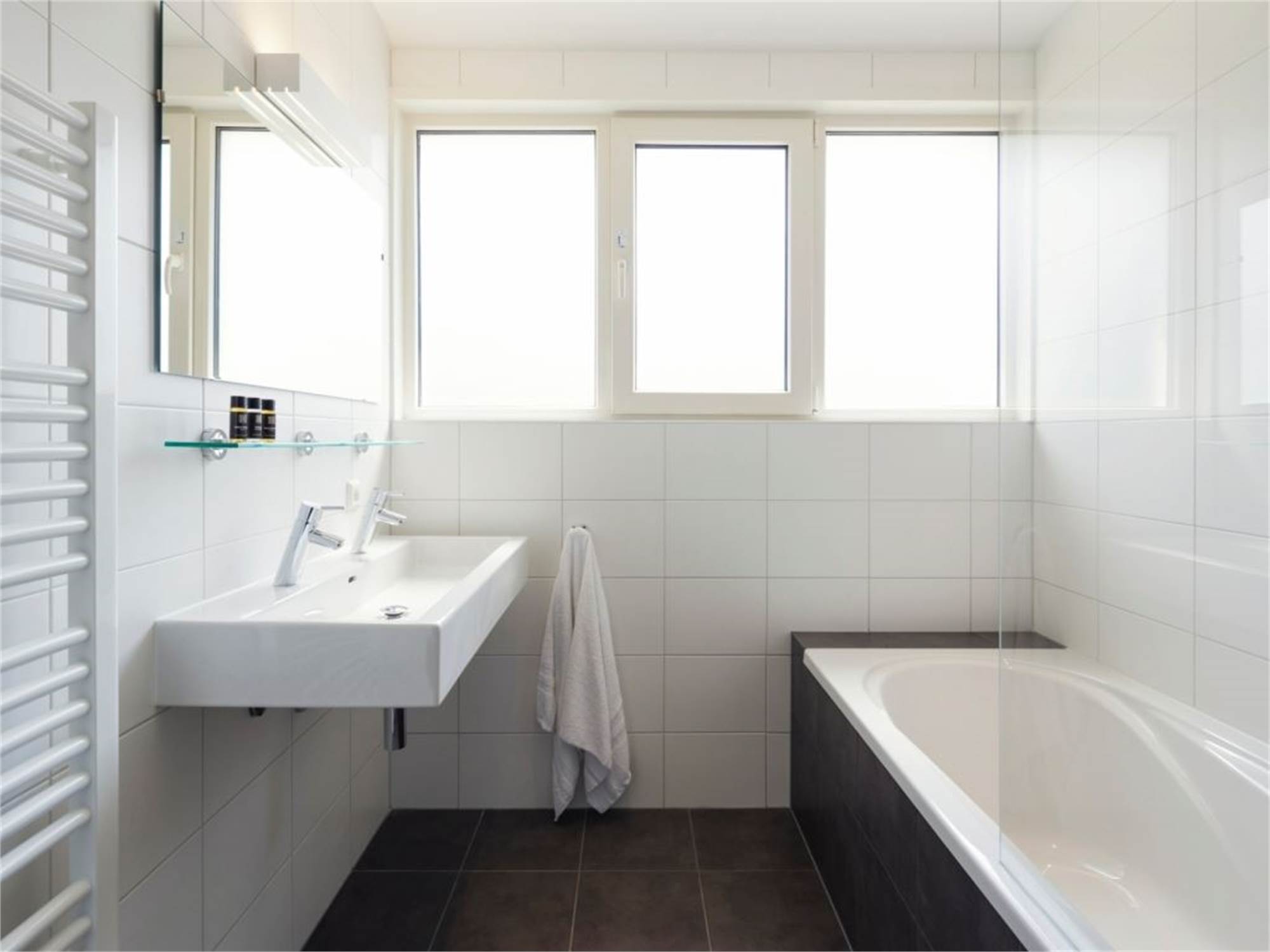 Bathroom with bathtub and double wasbasin on the first floor
