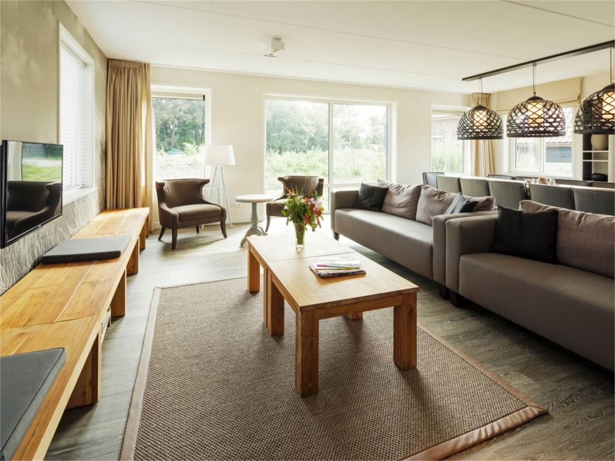 Bedroom with two single Auping box spring beds and flatscreen TV on the first floor