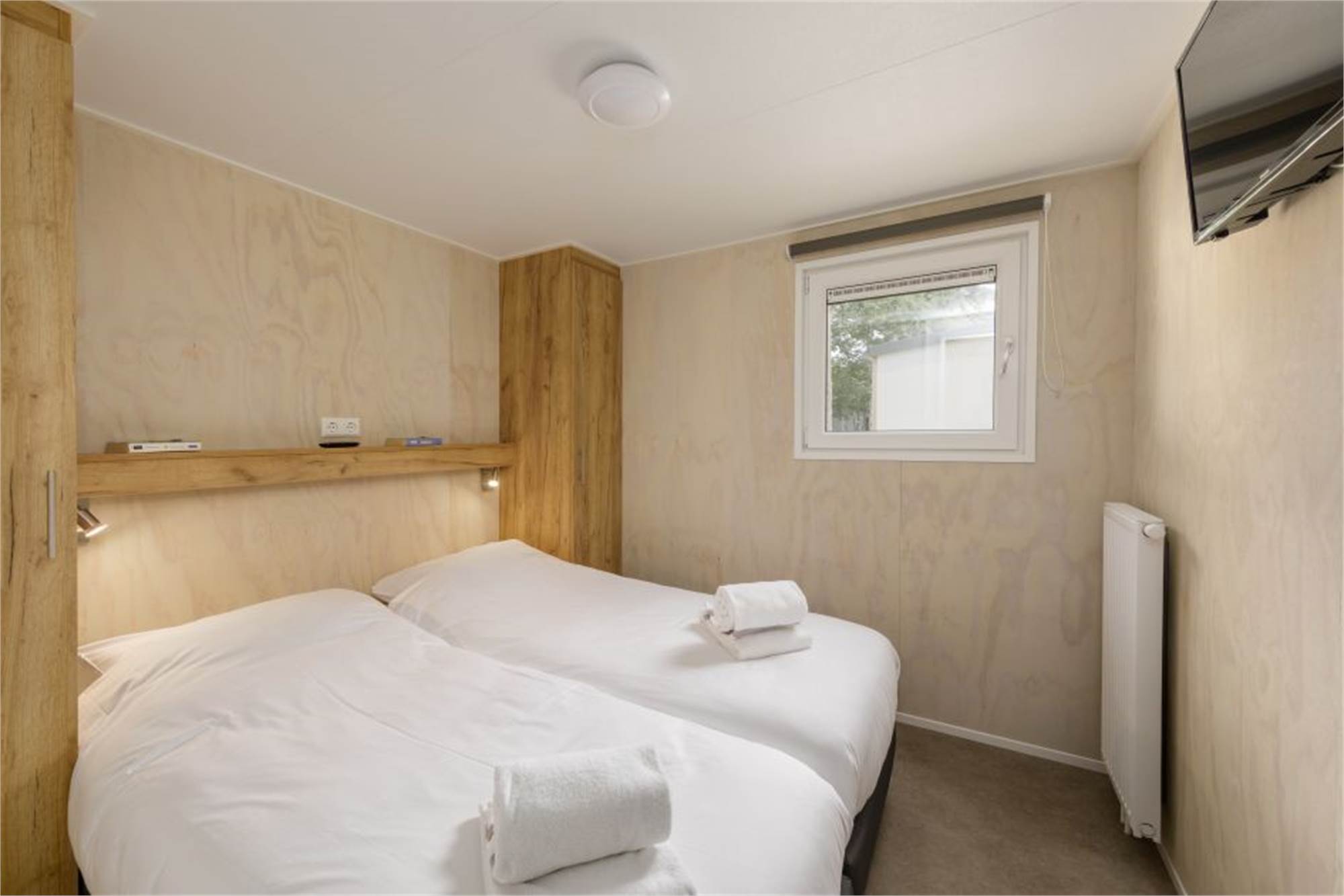 This new chalet is single-storey and sleeps six. The living room features a smart TV and the kitchen is equipped with a combination microwave, dishwasher and more. There are three bedrooms, all of which are furnished with two single beds. In this chalet there is one bathroom with a walk-in shower. There is a separate toilet. Outside, there is a furnished patio.